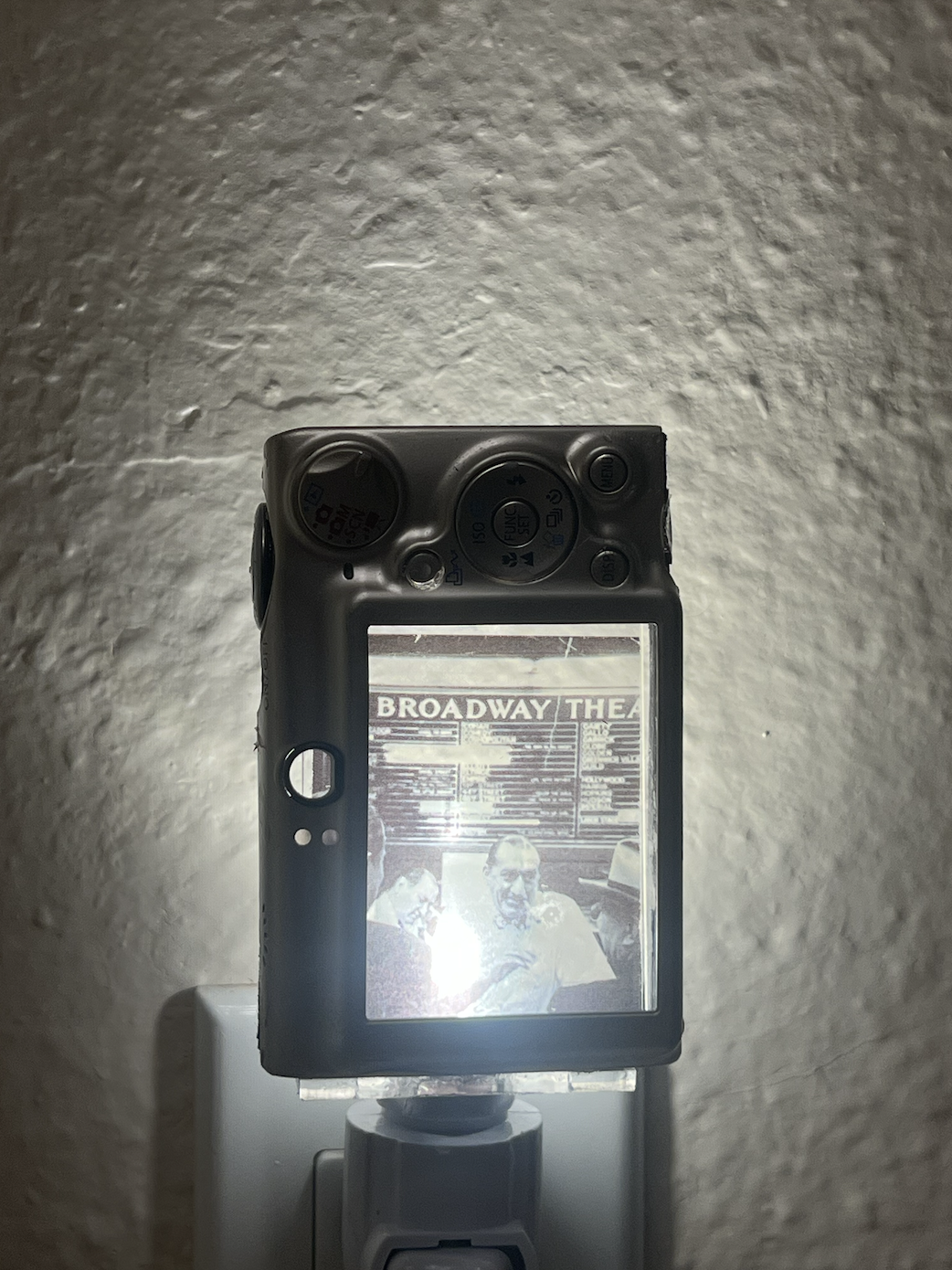 Through the Lens is a nightlight I created in the shell of a Canon PowerShot digital camera. Playing with the idea of using interchangable acrylic slides to showcase various images representing New York City through the 1900s.
